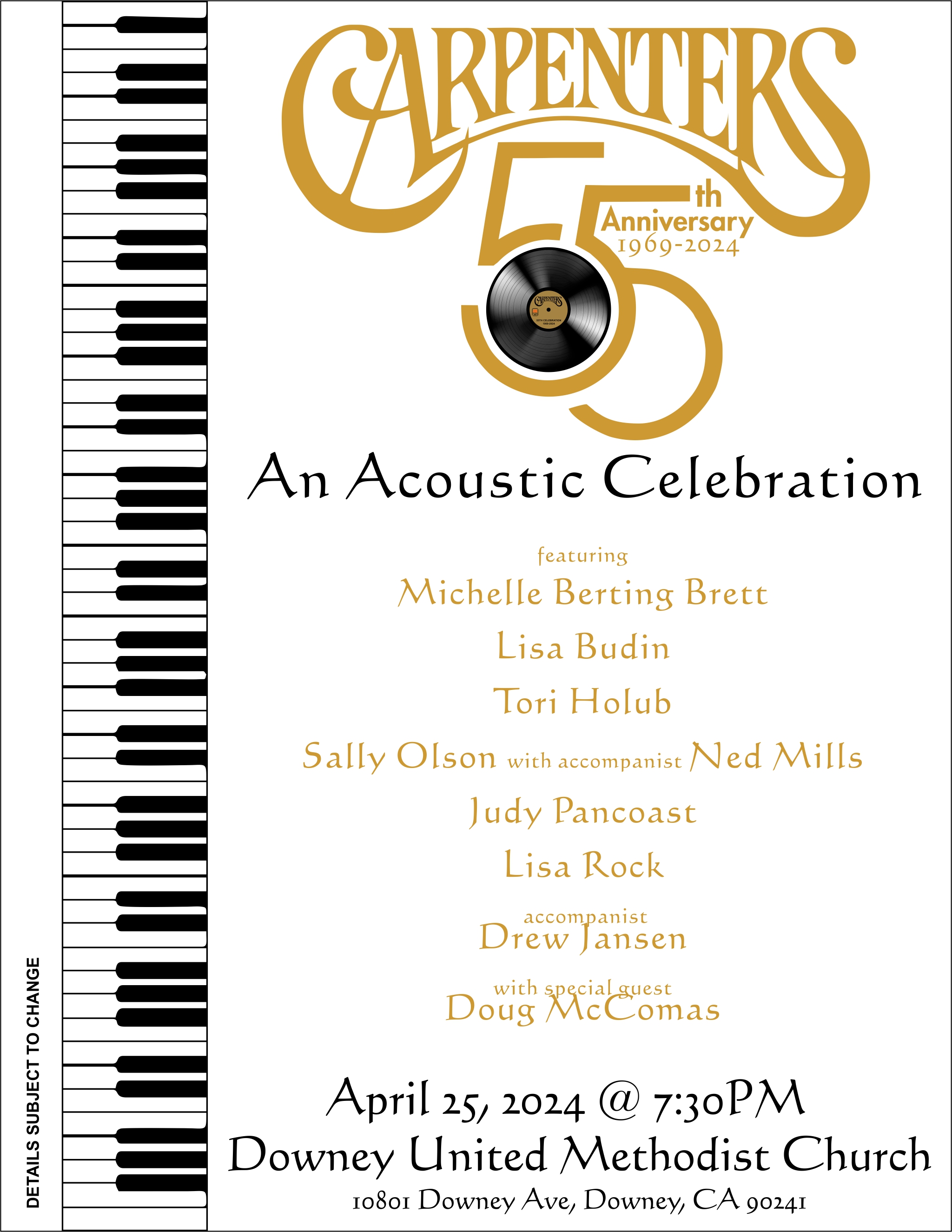 Sally Olson with Ned Mills (U.S.A.), Judy Pancoast (U.S.A.), Lisa Rock (U.S.A.) accompanist Drew Jansen (U.S.A.) and special guest Doug McComas (U.S.A.) as they join forces to perform their favorite Carpenters songs just for you!